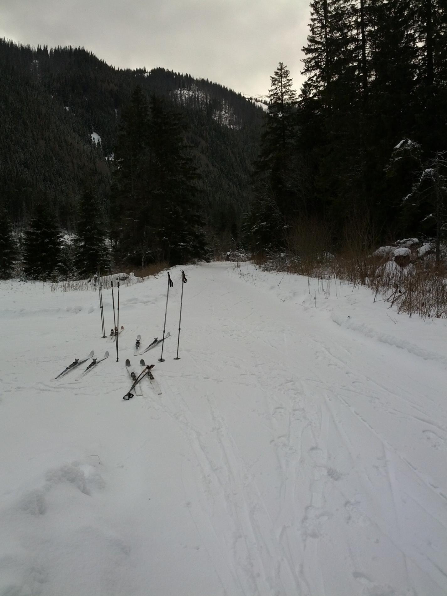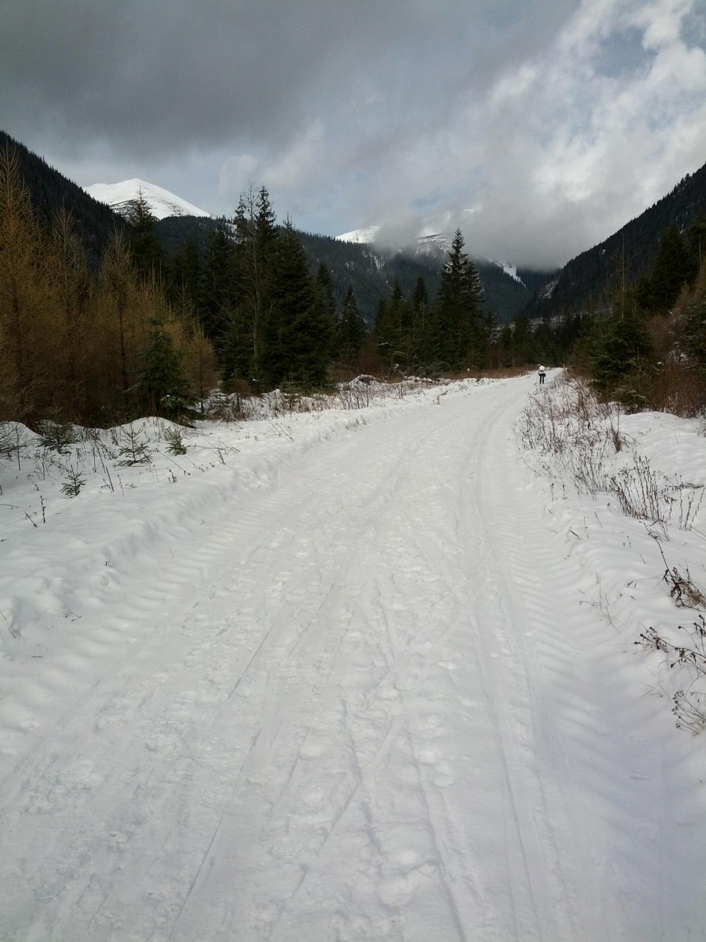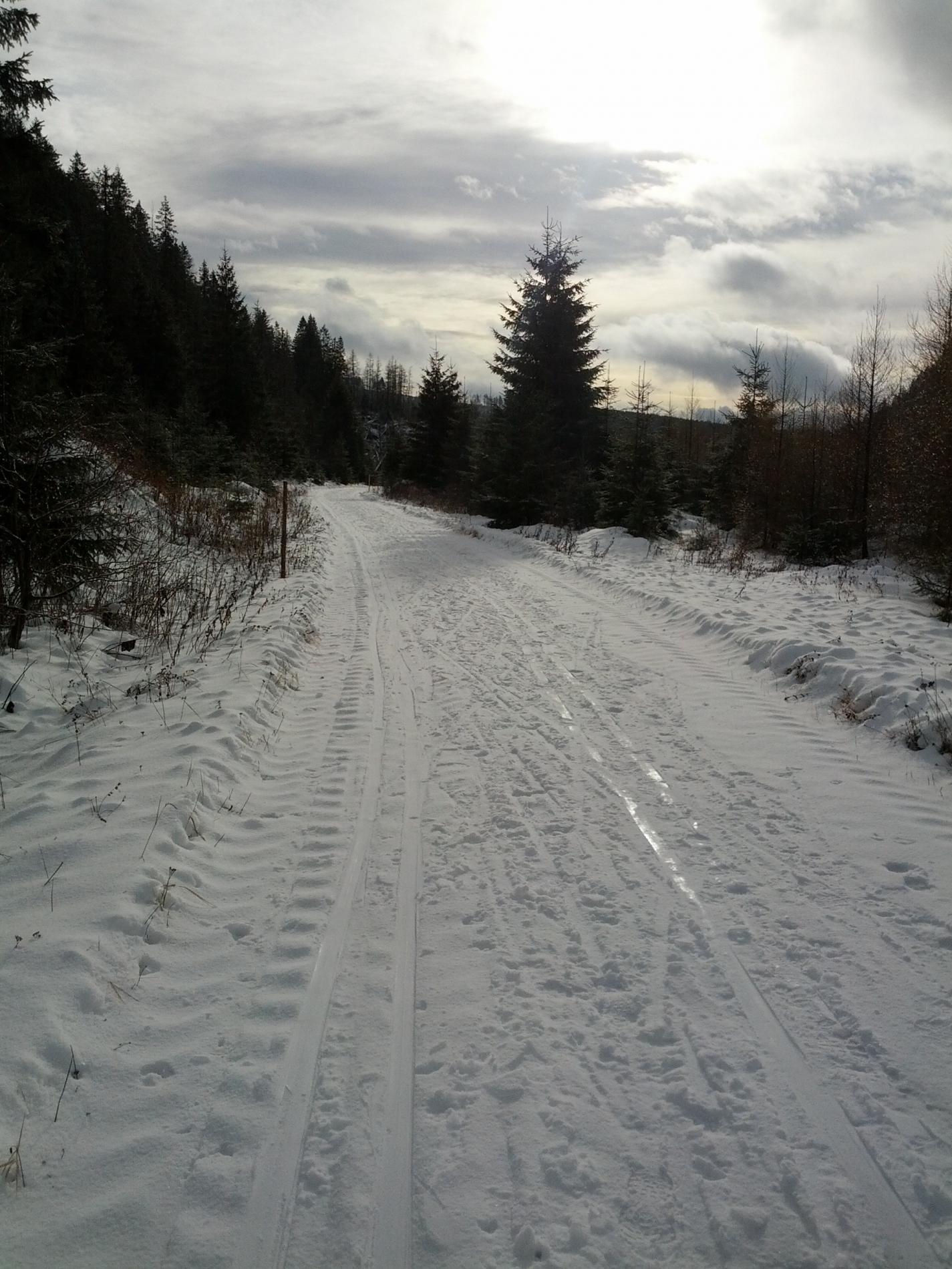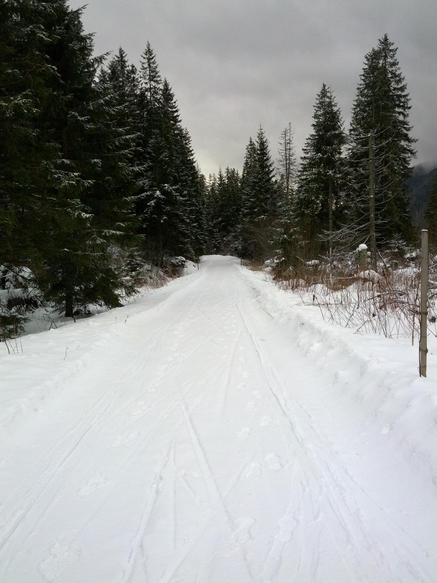 Z Podbanského po žltej značke na rázcestie Tichej a Kôprovej doliny, potom pokračovať ďalej po žltej do Tichej doliny. Cesta preplúžená, vhodná na turistické bežkovanie ale aj na korčulovanie s určitými obmedzeniami. V spodnej časti trocha zľadovatelé, neskôr primrznutý sneh s tenučkou vrstvičkou nového poprašku. Počasie: polooblačno až oblačno, tesne nad nulou, mierny vietor.